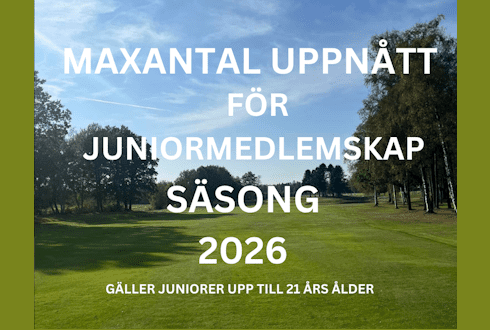 Det är fantastiskt roligt med det golfintresse som uppstått hos juniorer, men vi kan nu konstatera att medlemsantal för kategorin juniorer i Ängelholms Golfklubb är uppnått för säsong 2026 och vi kan tyvärr inte erbjuda medlemskap till fler juniormedlemmar.